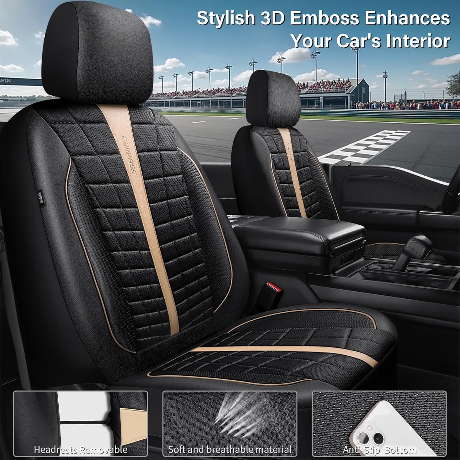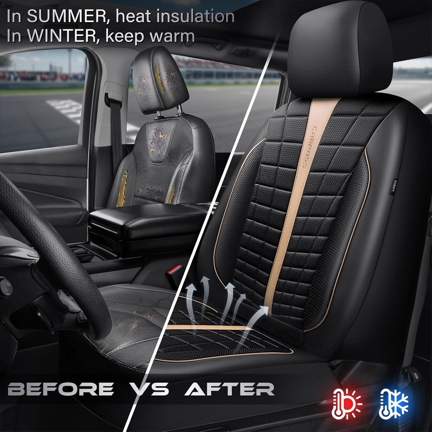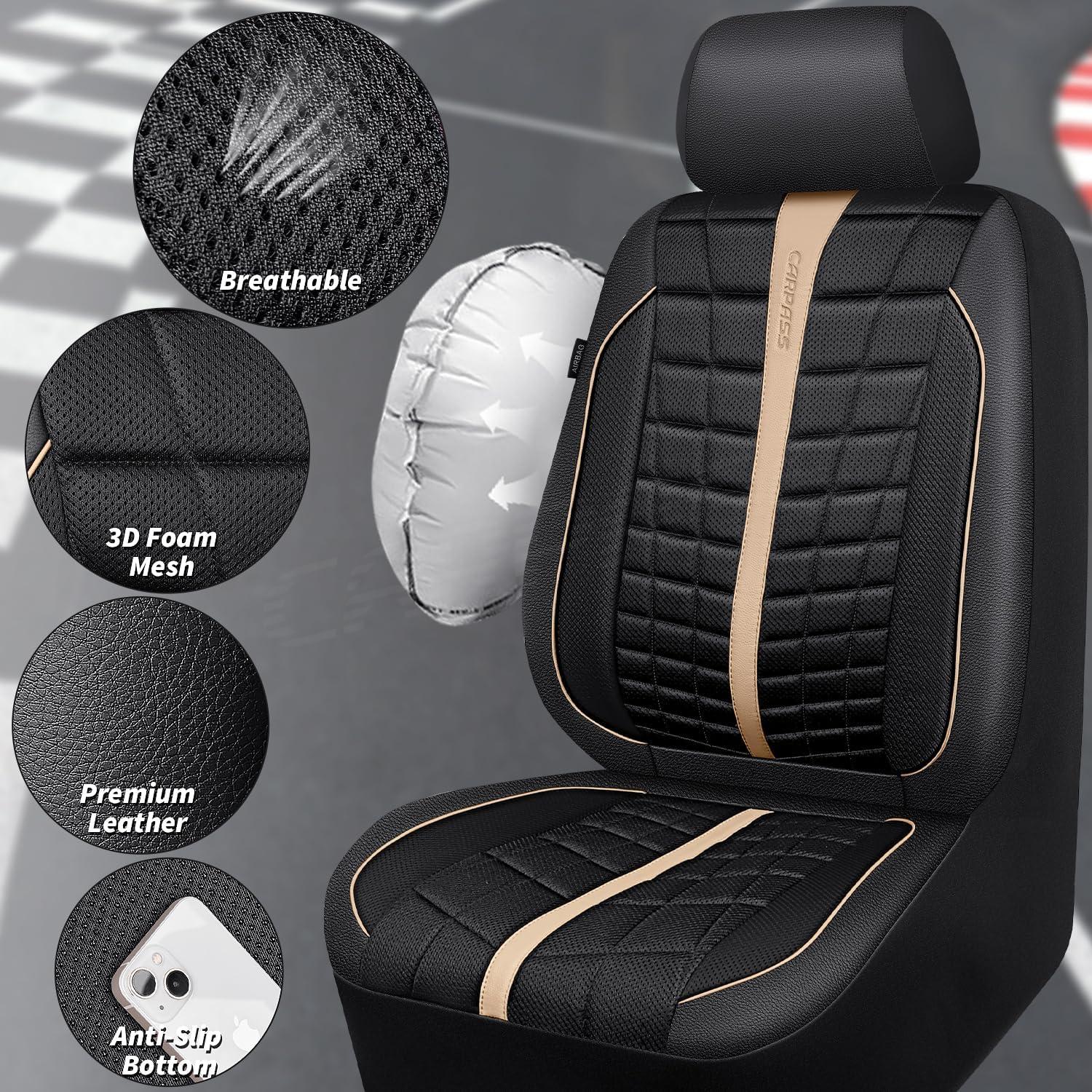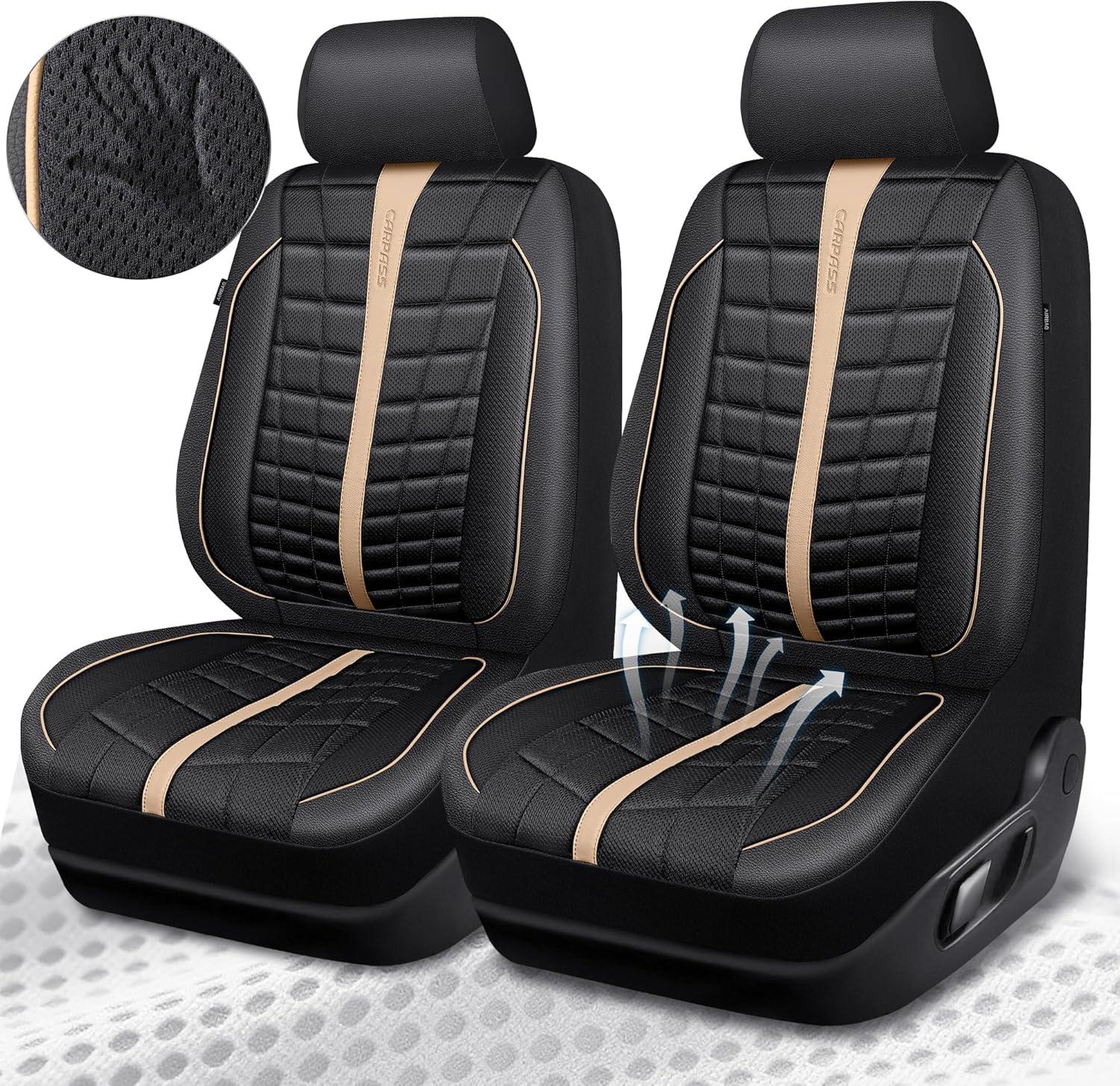 CAR PASS 3D Air Mesh Seat Covers for Car, Leather Car Seat Cover Front Seats,Breathable Foam Premium Leather Mesh Front Seat Covers Universal Fit for Cars Sedans Trucks Vans SUVs, Black Red(Black Beige Front Seat)