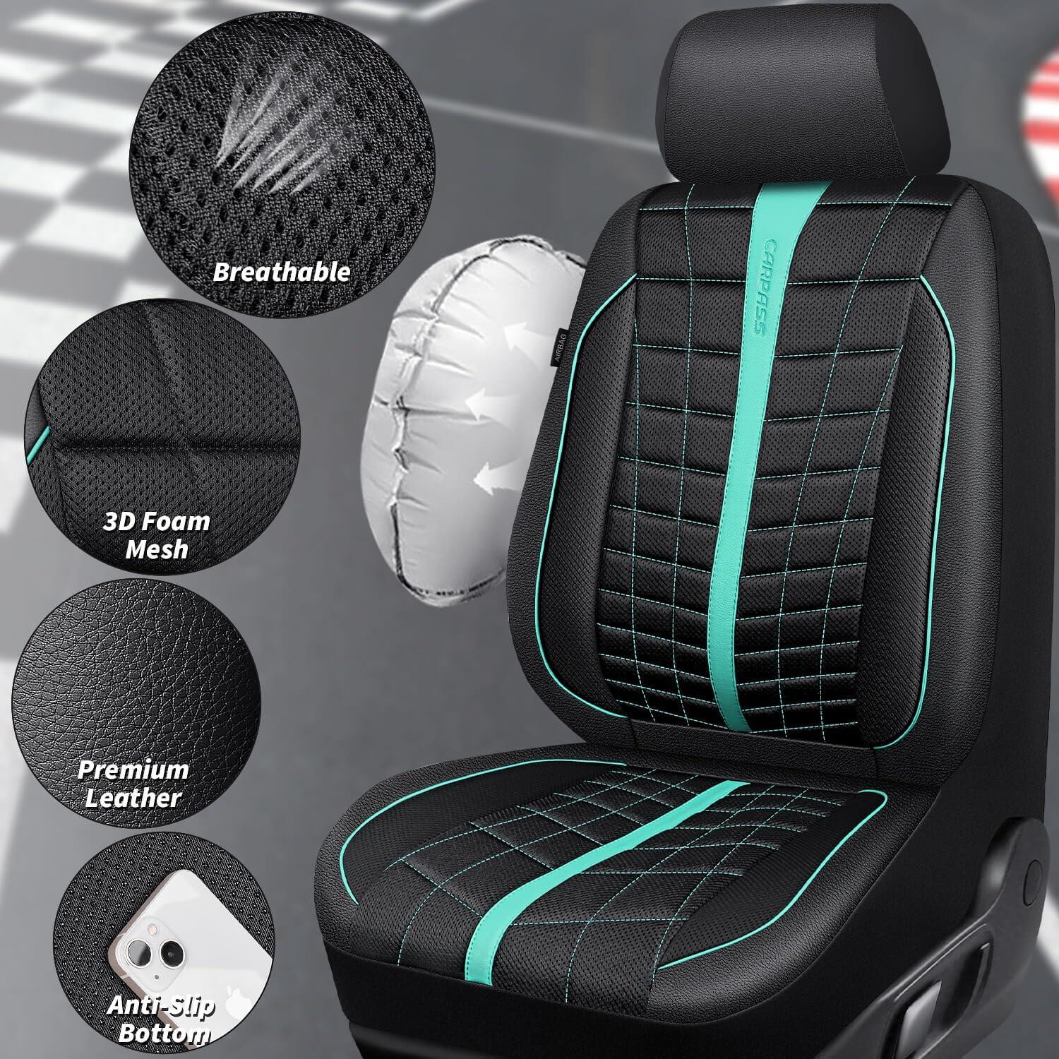 Get up to 60% off on CAR PASS 3D Air Mesh Seat Covers for Car, Leather Car Seat Cover Front Seats,Breathable Foam Premium Leather Mesh Front Seat Covers Universal Fit for Cars Sedans Trucks Vans SUVs, Black Red(Black Mint Full Set) styles during our winter sale event.