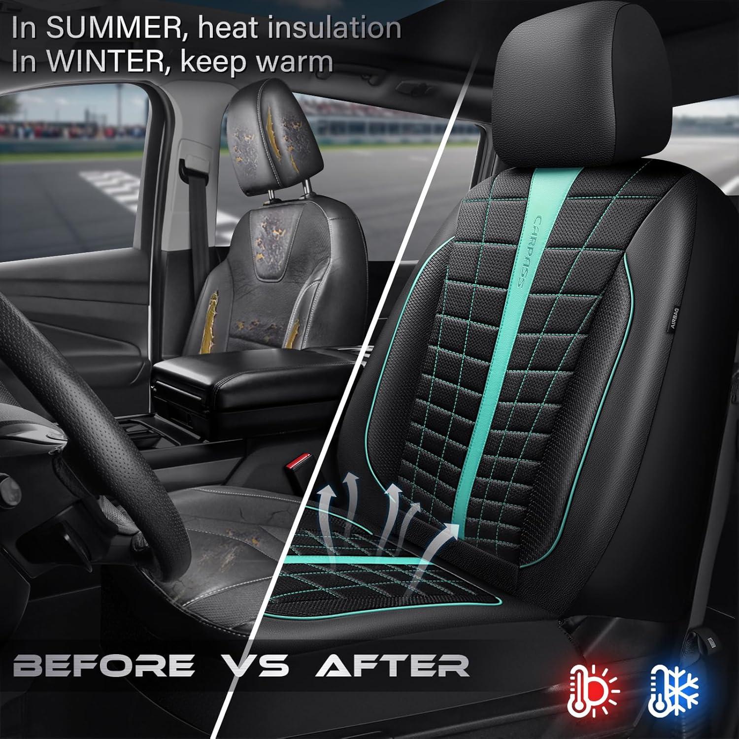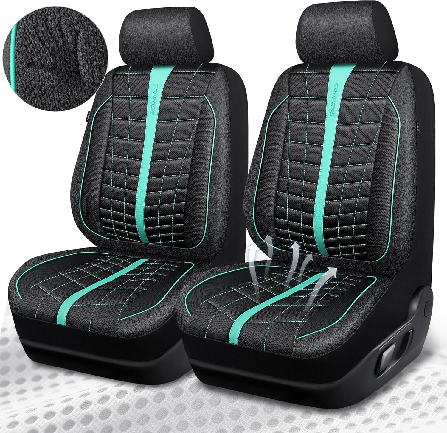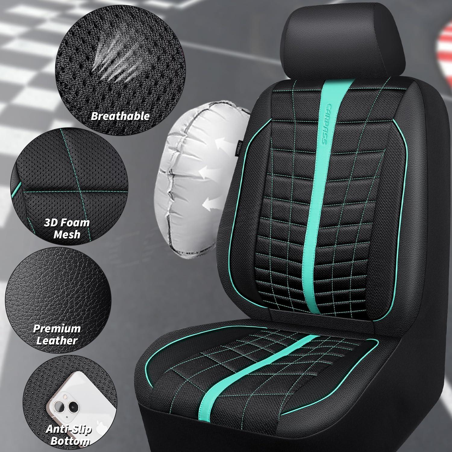 CAR PASS 3D Air Mesh Seat Covers for Car, Leather Car Seat Cover Front Seats,Breathable Foam Premium Leather Mesh Front Seat Covers Universal Fit for Cars Sedans Trucks Vans SUVs, Black Red(Black Mint Front Seat)