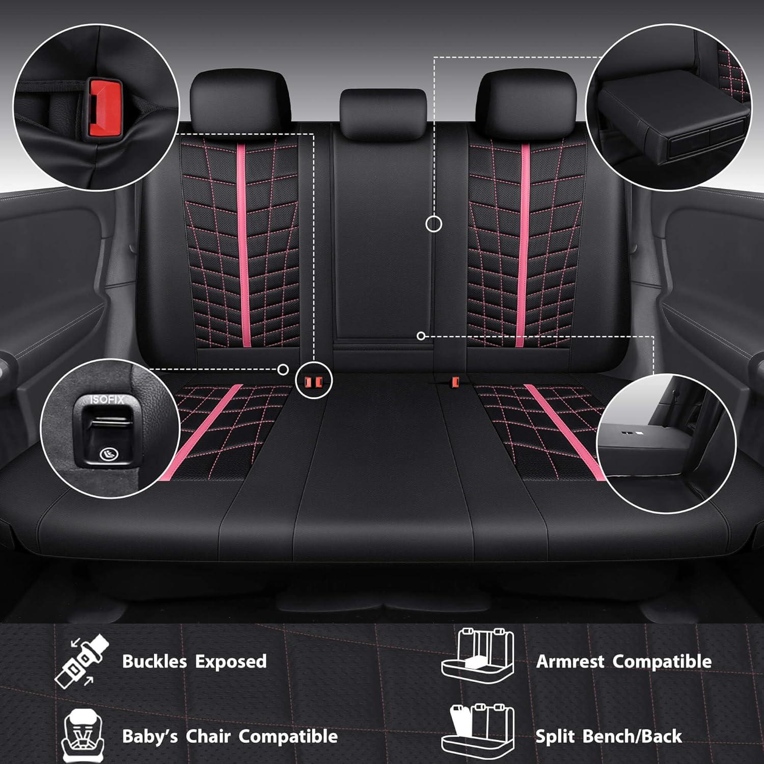 CAR PASS 3D Air Mesh Seat Covers for Car, Leather Car Seat Cover Front Seats,Breathable Foam Premium Leather Mesh Front Seat Covers Universal Fit for Cars Sedans Trucks Vans SUVs, Black Red(Black Pink Full Set)