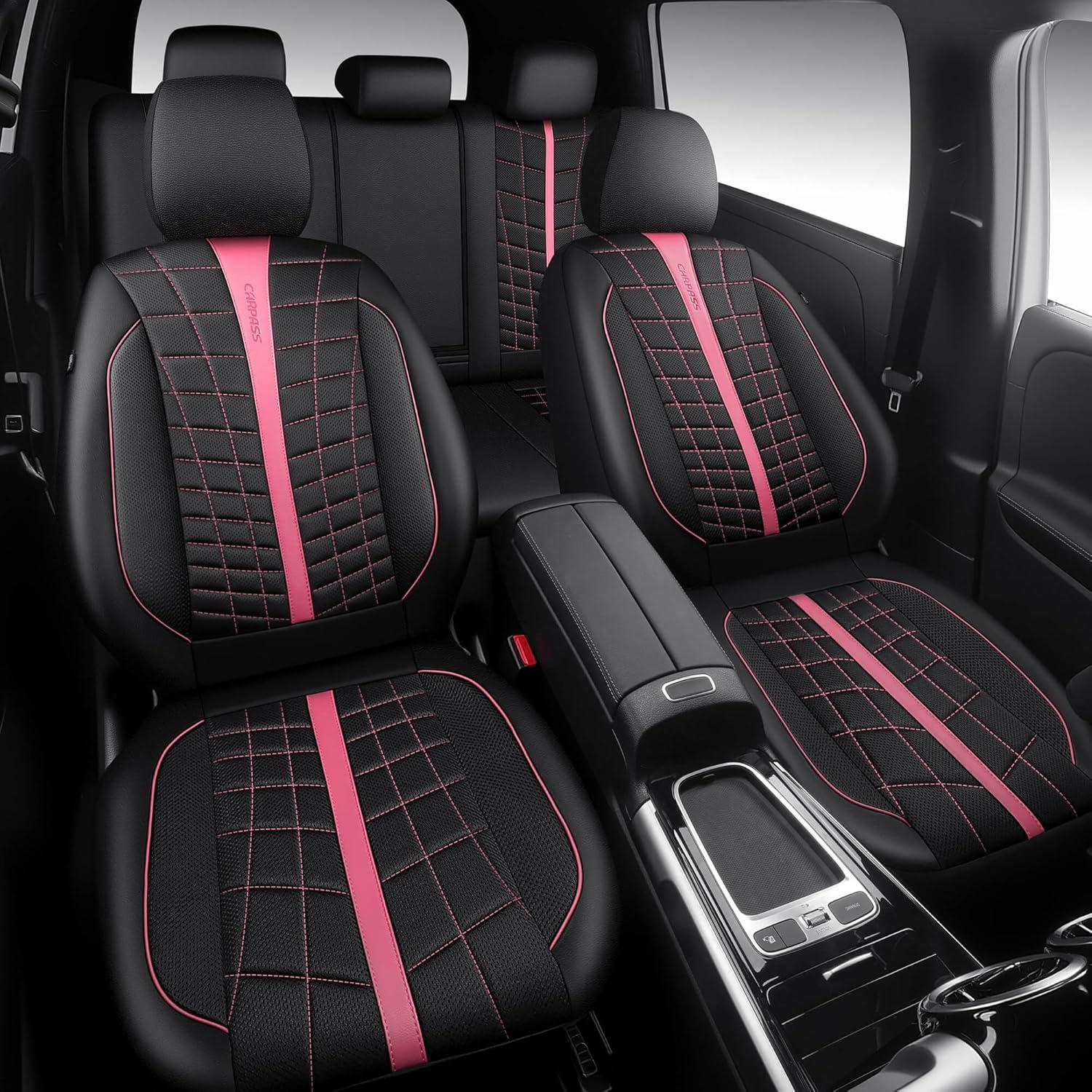 CAR PASS 3D Air Mesh Seat Covers for Car, Leather Car Seat Cover Front Seats,Breathable Foam Premium Leather Mesh Front Seat Covers Universal Fit for Cars Sedans Trucks Vans SUVs, Black Red(Black Pink Front Seat)