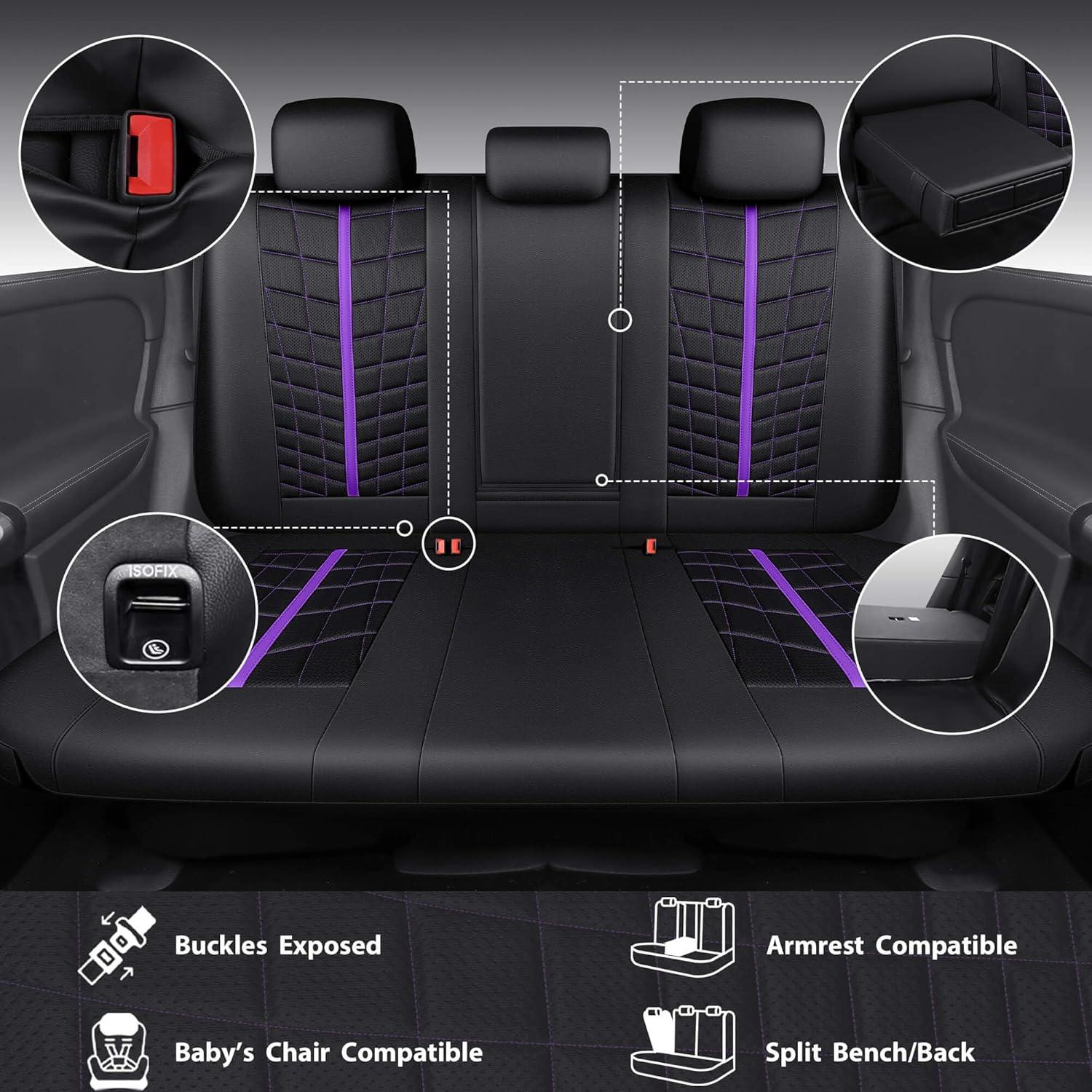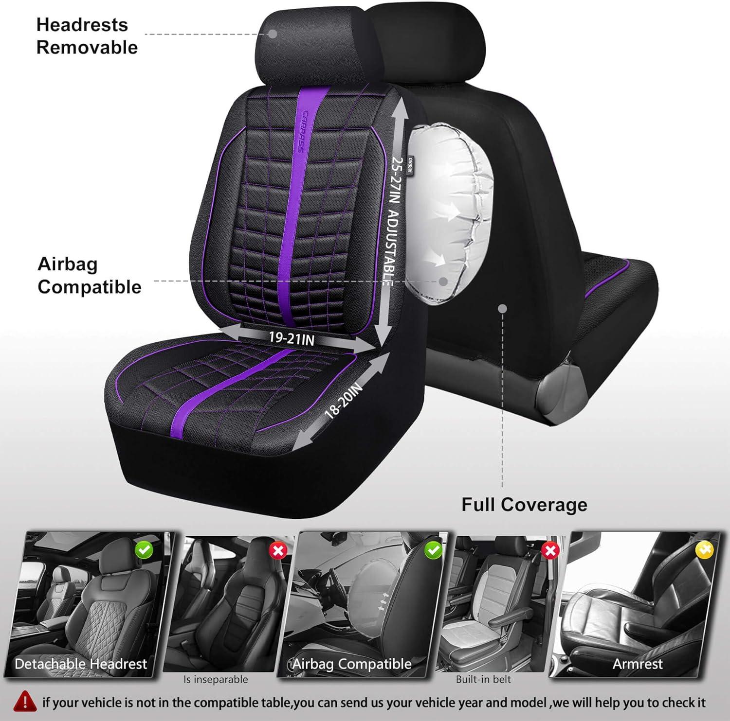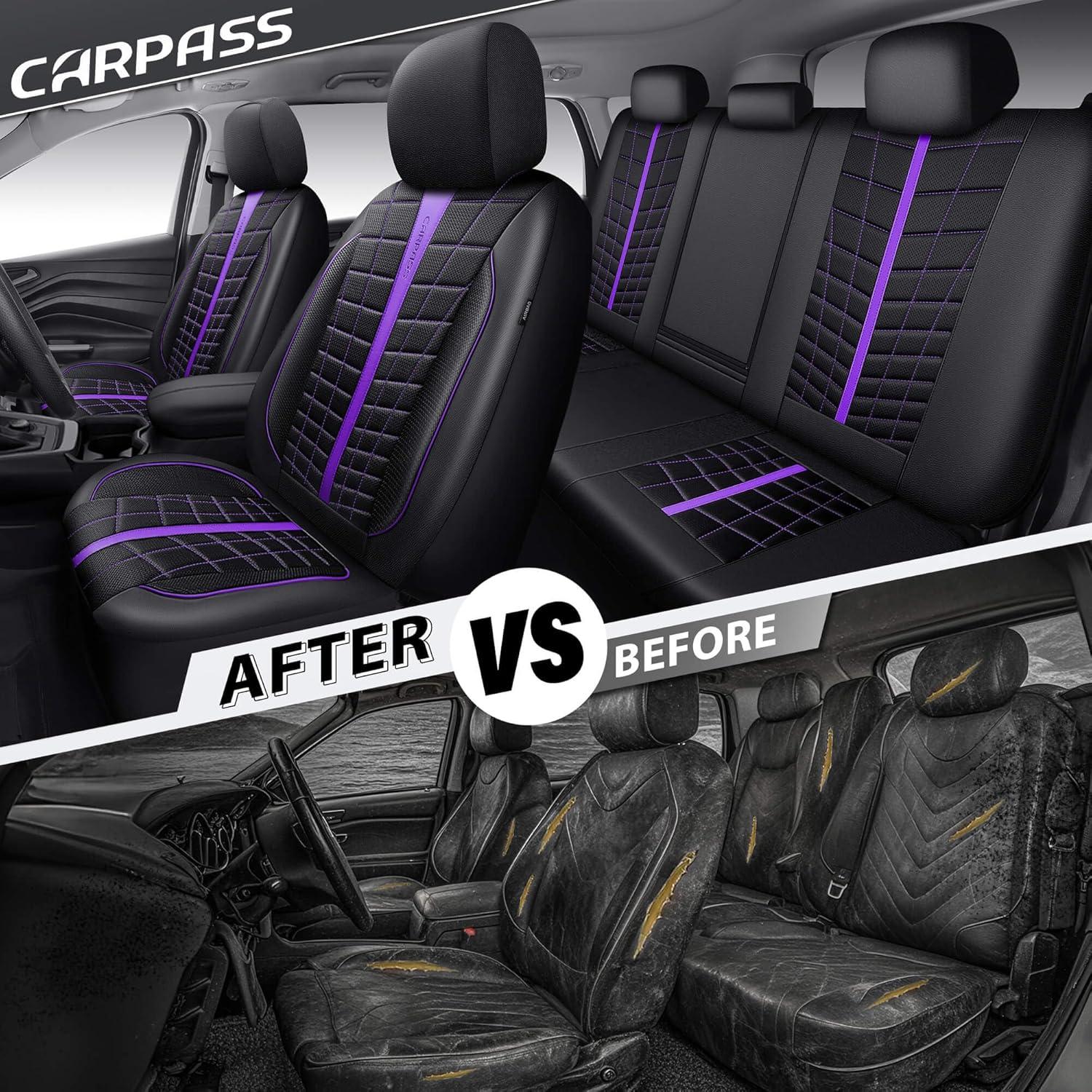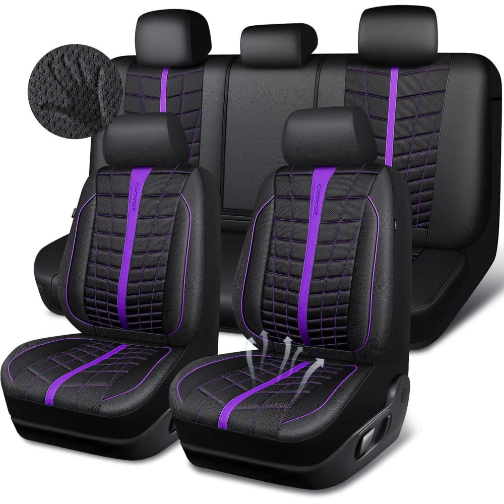 CAR PASS 3D Air Mesh Seat Covers for Car, Leather Car Seat Cover Front Seats,Breathable Foam Premium Leather Mesh Front Seat Covers Universal Fit for Cars Sedans Trucks Vans SUVs, Black Red(Black Purple Full Set)