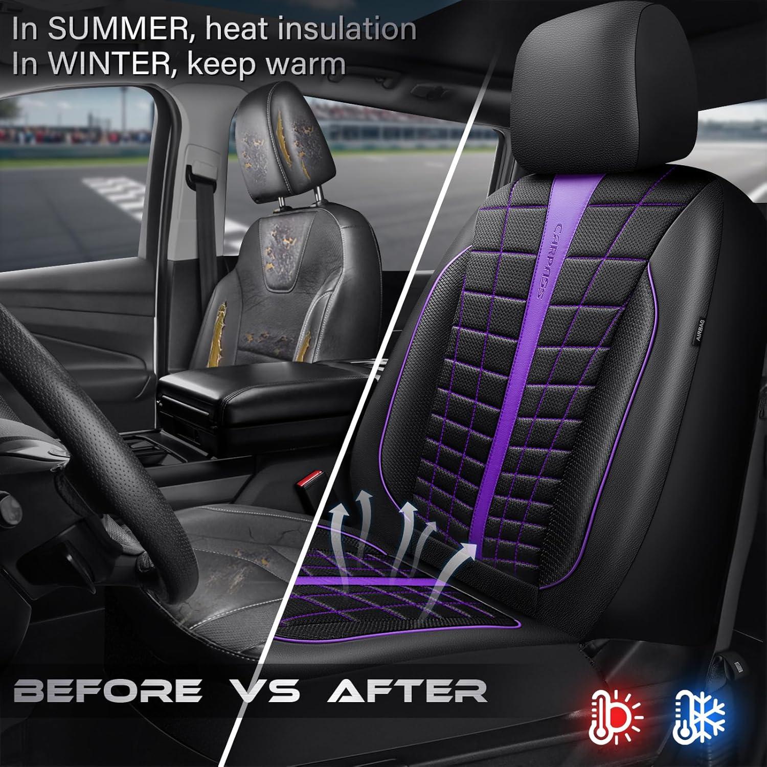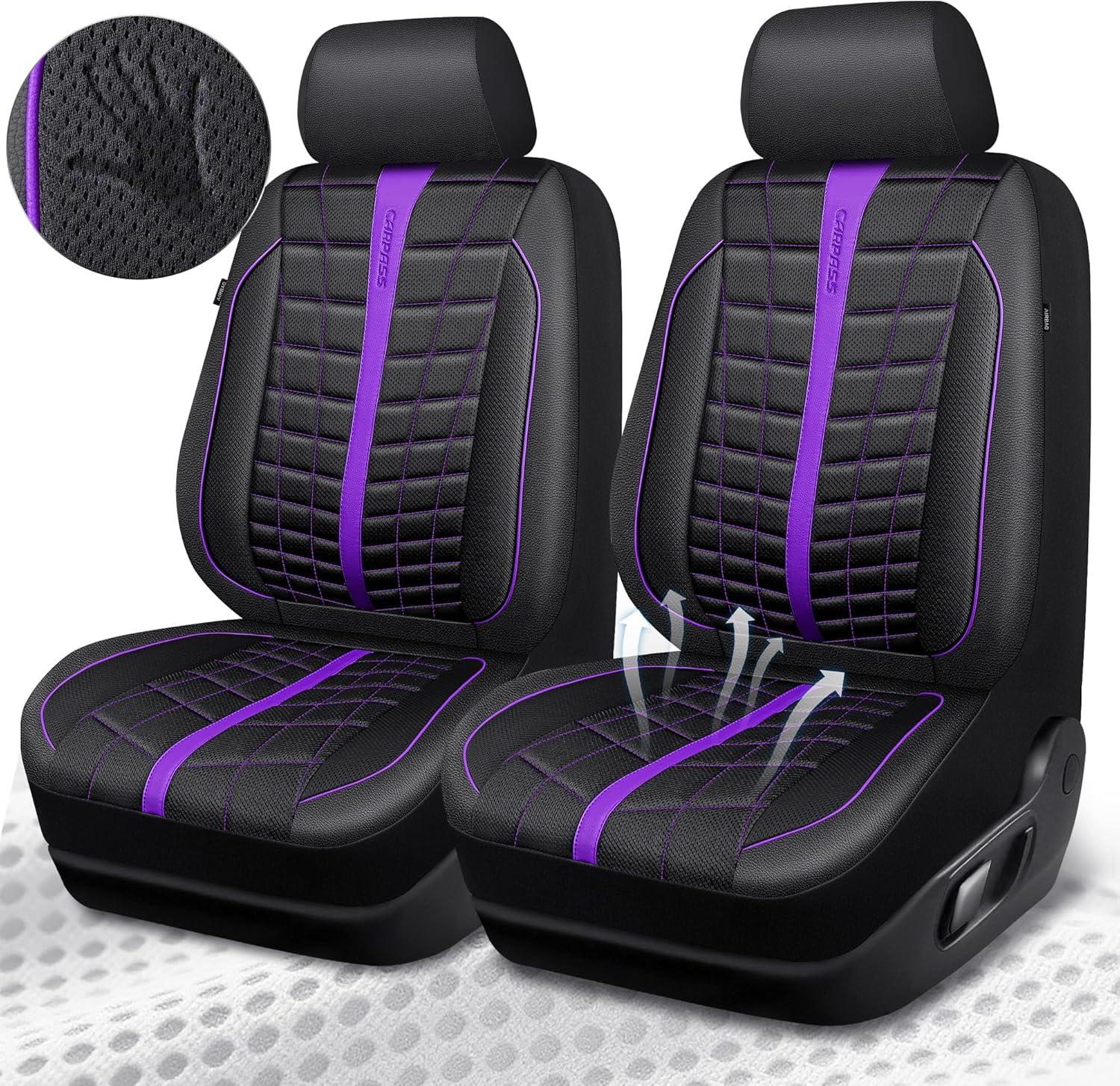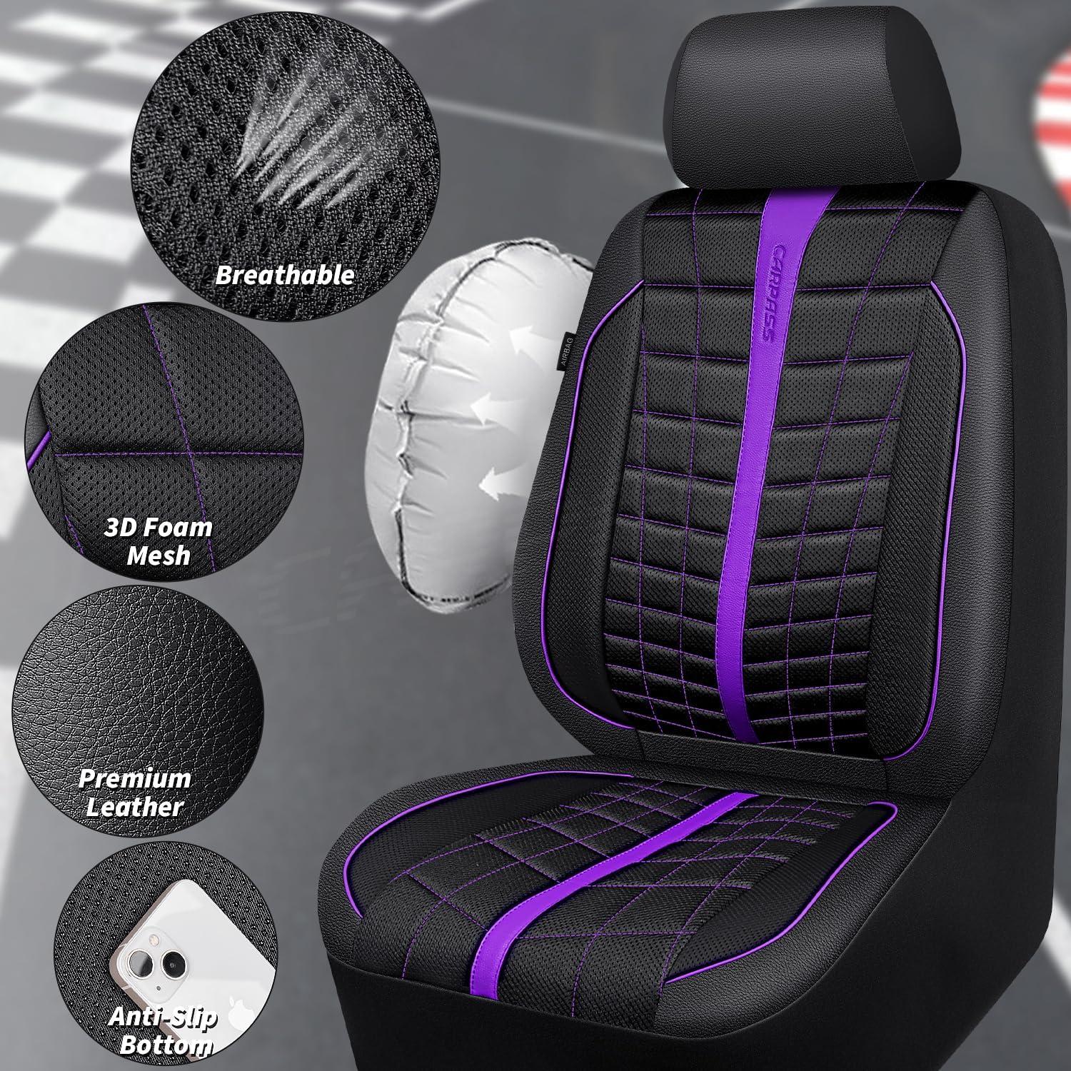 CAR PASS 3D Air Mesh Seat Covers for Car, Leather Car Seat Cover Front Seats,Breathable Foam Premium Leather Mesh Front Seat Covers Universal Fit for Cars Sedans Trucks Vans SUVs, Black Red(Black Purple Front Seat)