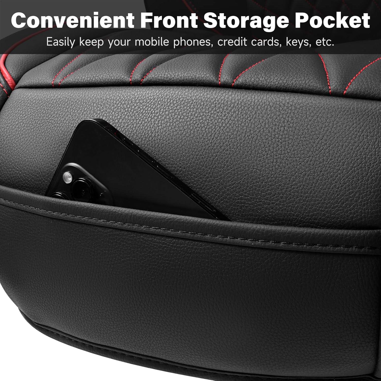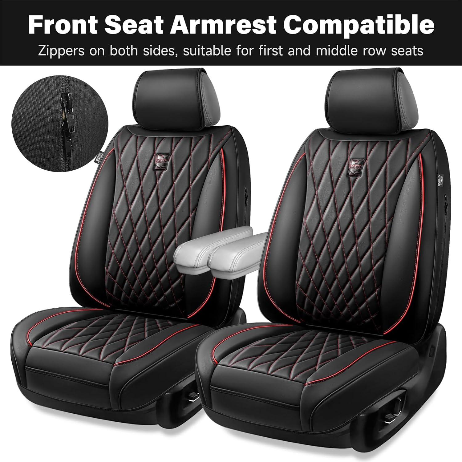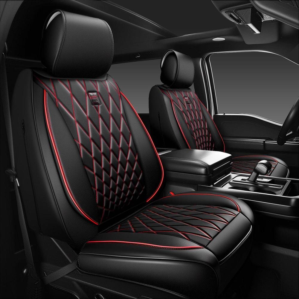 【ADVANCED PU LEATHER SEAT COVERS】The front seat covers are made of high quality leather, providing full protection for your car seats. Waterproof and easy to clean. Outstanding rhombus stitching design adds luxury and fashion to your car's interior.
