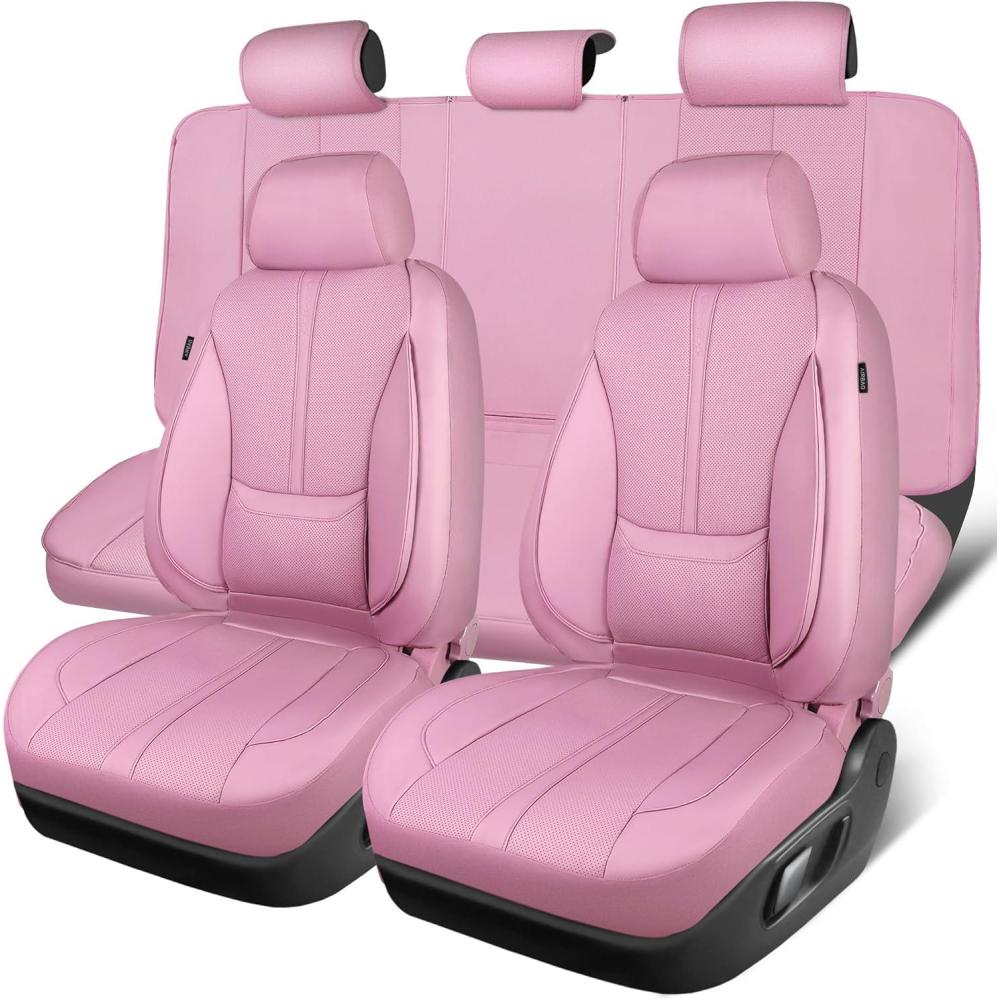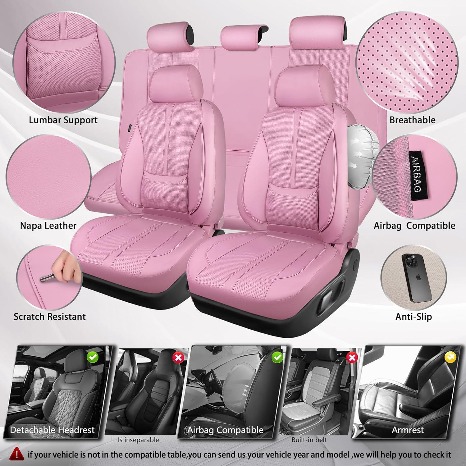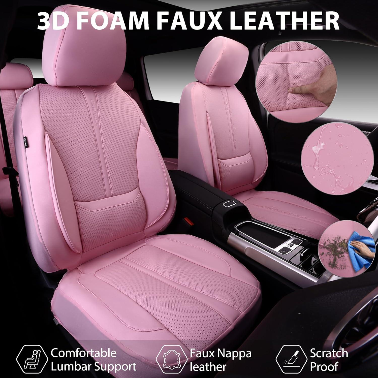 CAR PASS Nappa Leather Car Seat Covers, Water Resistant 3D Foam Faux Leather Seat Covers, Lumbar Support Automotive Seat Covers 2 Front Seats, Comfort & Universal Fit for Cars SUV Truck, Solid Black(All Pink)