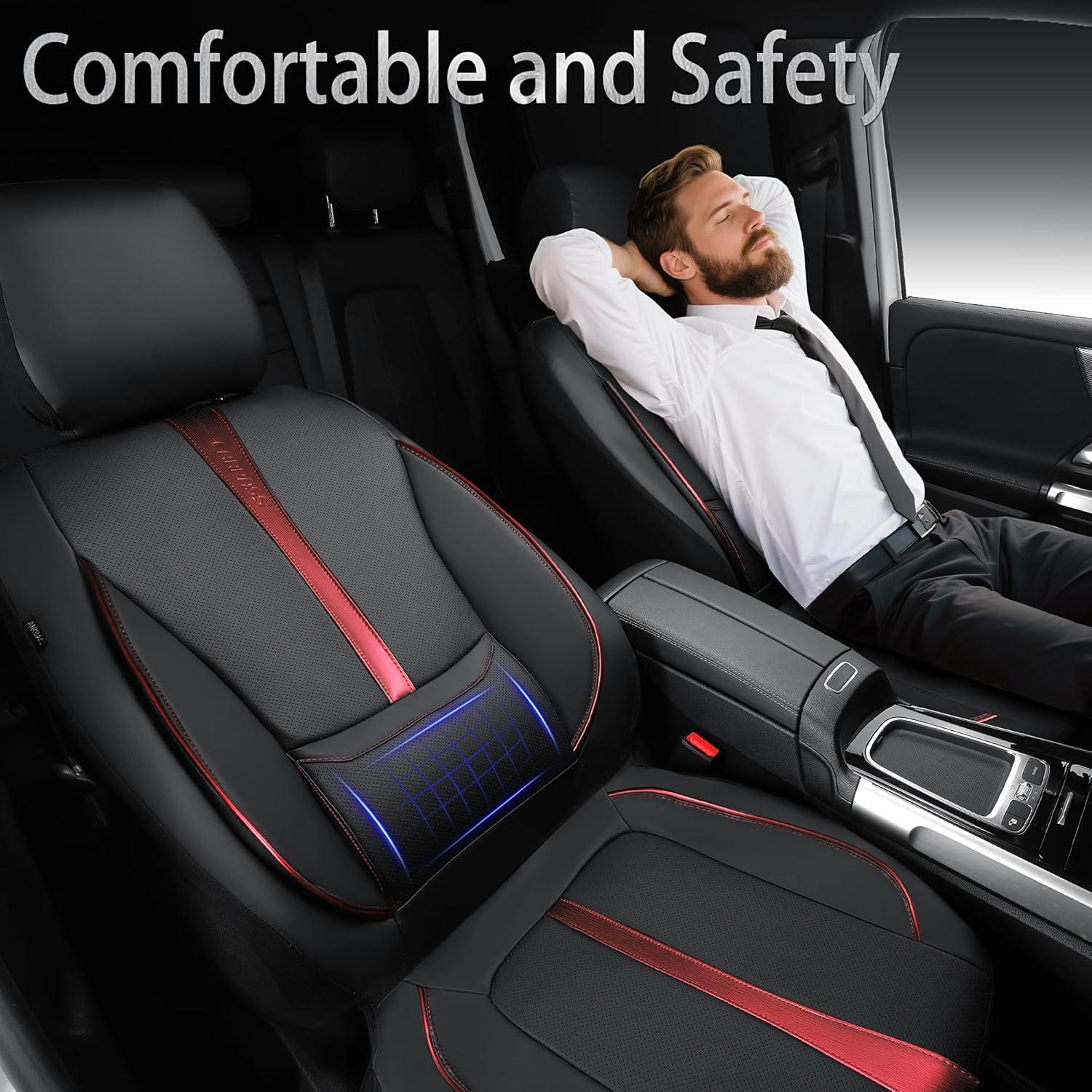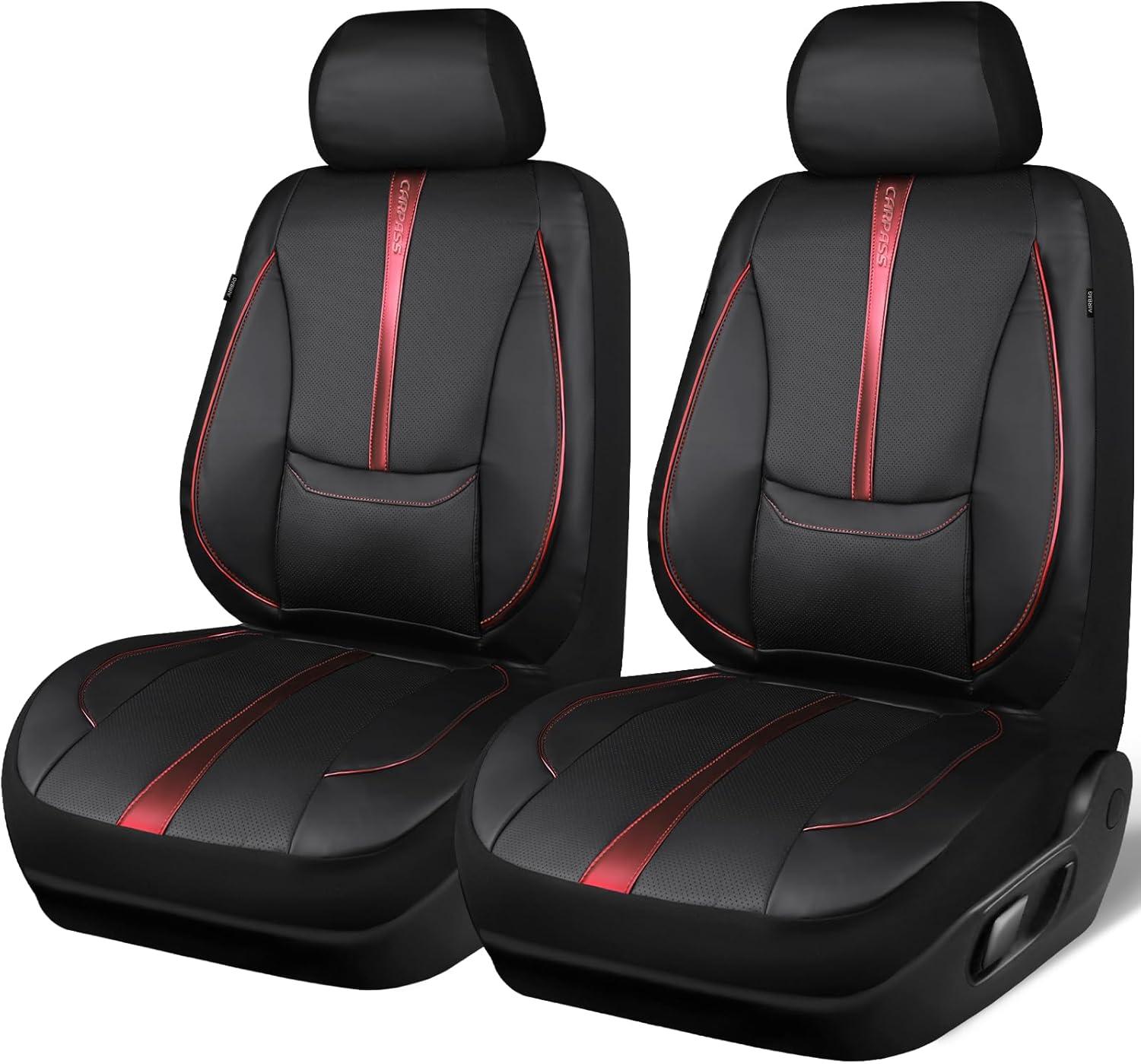 CAR PASS Nappa Leather Car Seat Covers, Water Resistant 3D Foam Faux Leather Seat Covers, Lumbar Support Automotive Seat Covers 2 Front Seats, Comfort & Universal Fit for Cars SUV Truck, Solid Black(Black And Red)