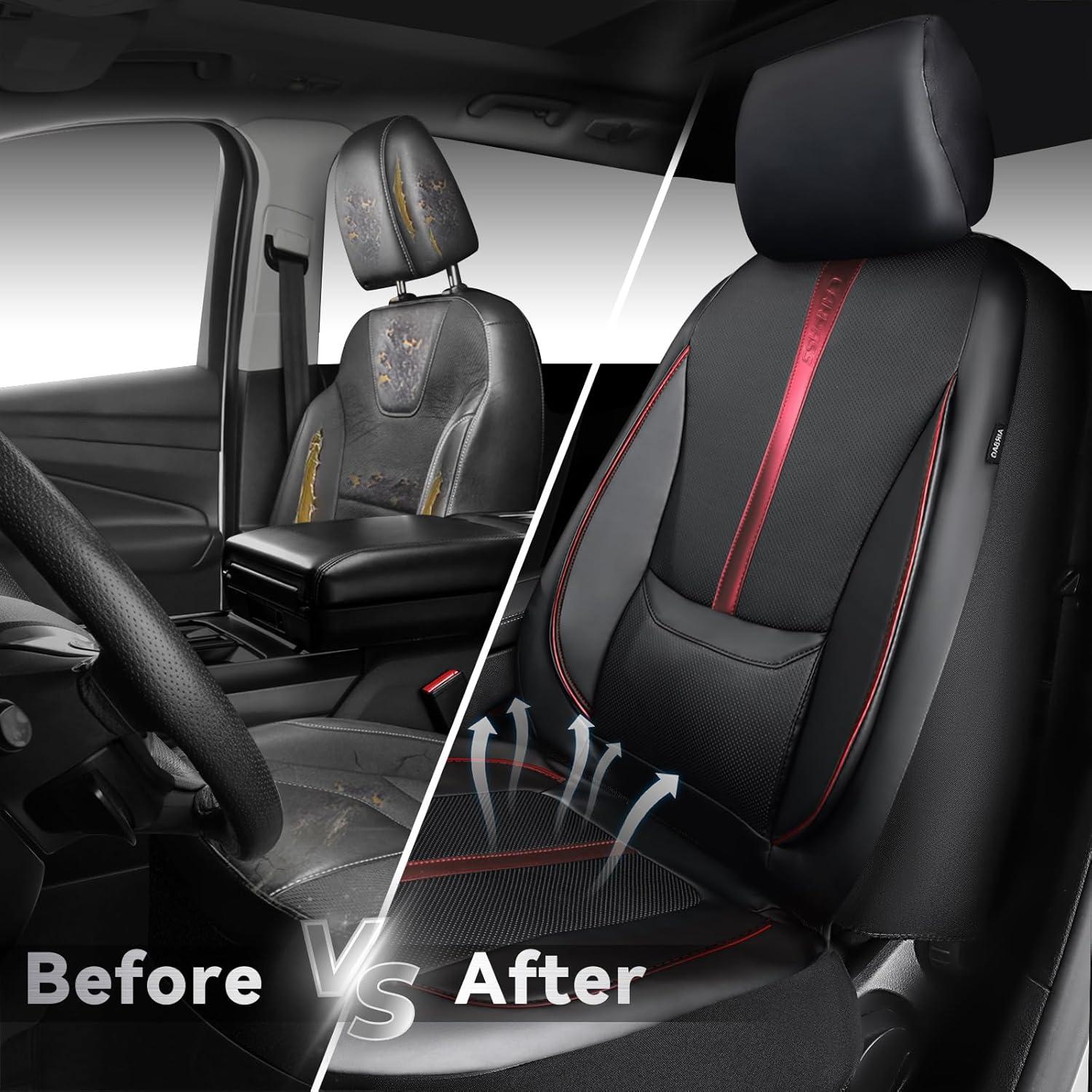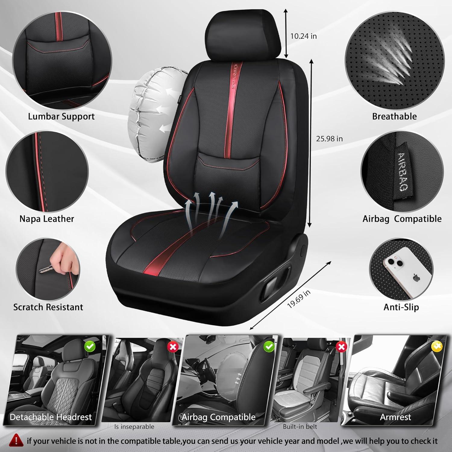 PREMIUM NAPPA LEATHER: The front seat covers are made of high-quality Nappa leather, luxurious, soft, water-resistant, and easy to clean. Protect your car seat covers from dust, scratches, and other possible damage. Providing full protection for your car seats.