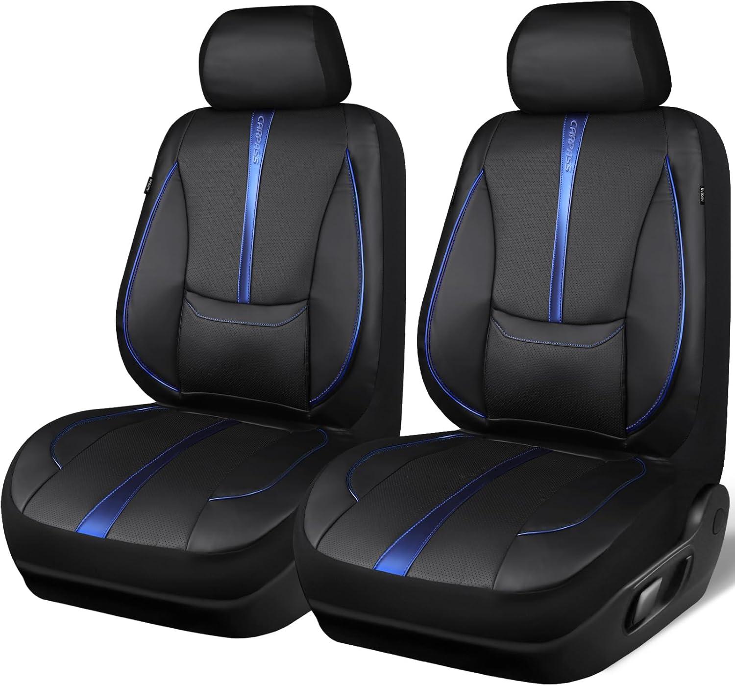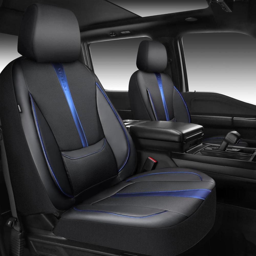 CAR PASS Nappa Leather Car Seat Covers, Water Resistant 3D Foam Faux Leather Seat Covers, Lumbar Support Automotive Seat Covers 2 Front Seats, Comfort & Universal Fit for Cars SUV Truck, Solid Black(Black Blue)