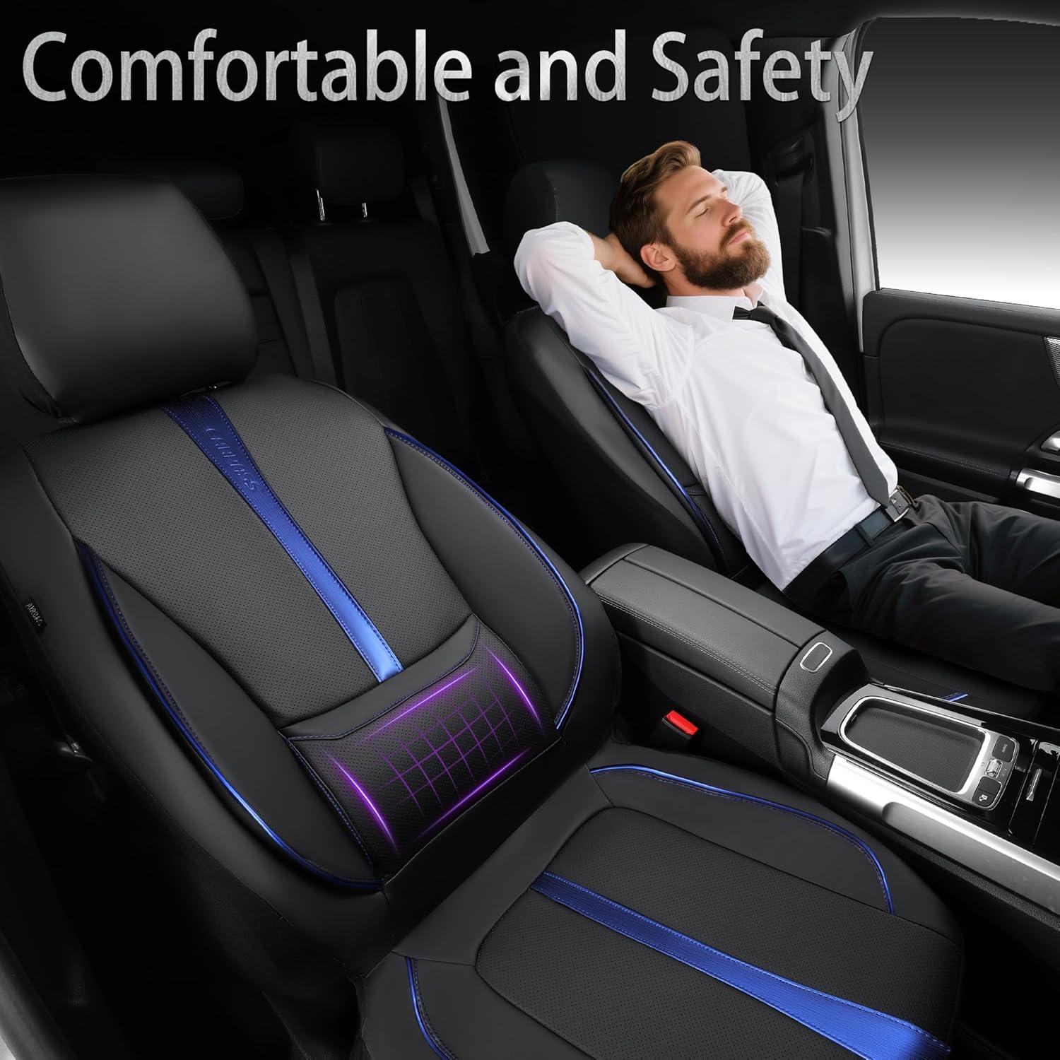 3D FOAM LUMBAR SUPPORT: Built-in memory 3D foam padding, car seat covers provide continuous and comfortable support for the lumbar spine, relieving driving fatigue, allowing you to sit for long periods without getting tired, and easily handling long trips.