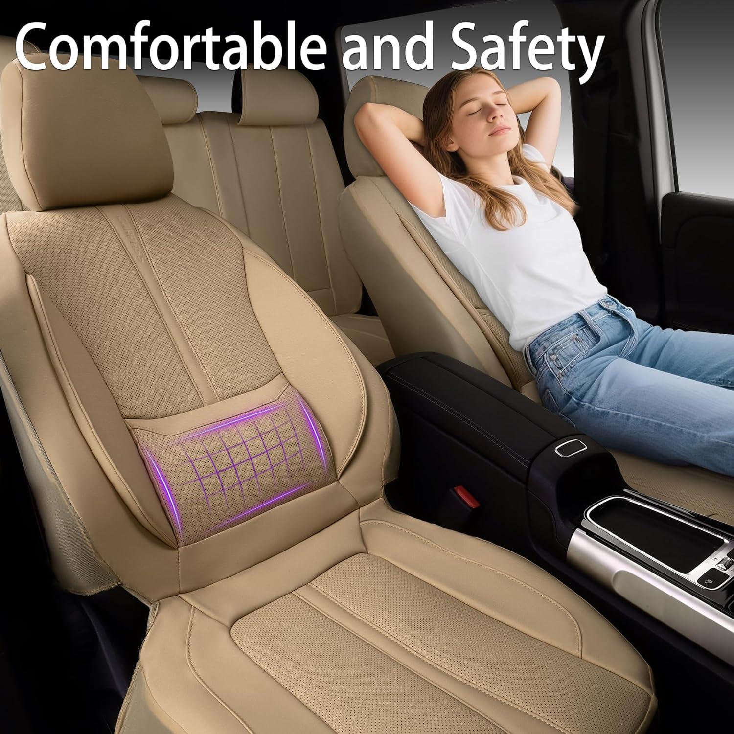 3D FOAM LUMBAR SUPPORT: Built-in memory 3D foam padding, car seat covers provide continuous and comfortable support for the lumbar spine, relieving driving fatigue, allowing you to sit for long periods without getting tired, and easily handling long trips.