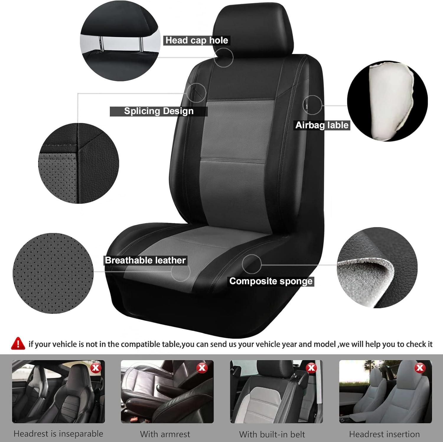 CAR Pass Skyline Two Front Pu Leather Car Seat Covers -Airbag Compatible, Universal fit for Cars,Suvs,Vehicles(Front Seat,Black and Black(Black and Gray)